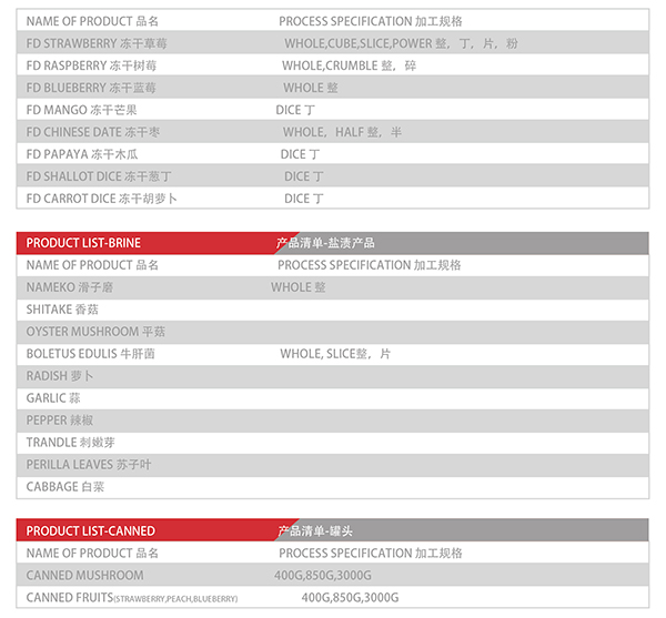 Freeze Dried Products